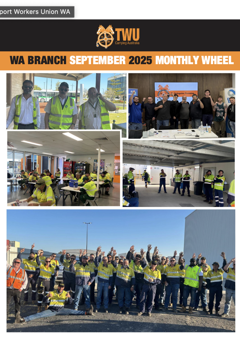 Read now about September 2025! In this wheel, read all about the great wins the TWU WA had in securing fair agreements, improvements on road safety, saving WA bus stations and so much more